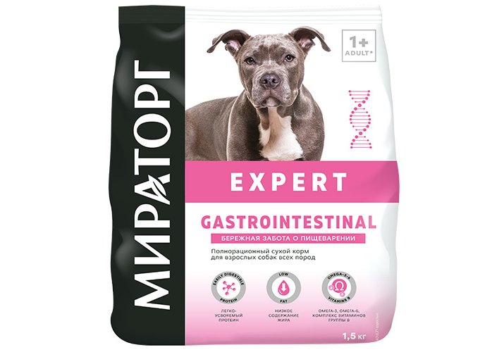 Мираторг Expert Gastrointestinal Сухой корм для взрослых собак всех пород Бережная забота о пищеварении 1,5 кг
