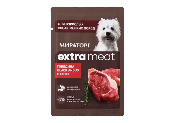 Мираторг Winner Extra Meat Влажный корм Паучи для собак Мелких пород Говядина Black Angus в соусе (цена за упаковку) 80г х 28шт
