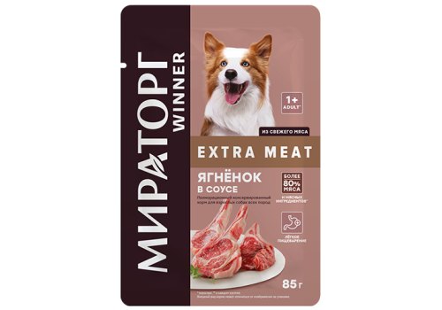 Мираторг Winner Extra Meat Влажный корм Паучи для взрослых собак всех пород Ягнёнок в соусе (цена за упаковку) 85г х 24шт