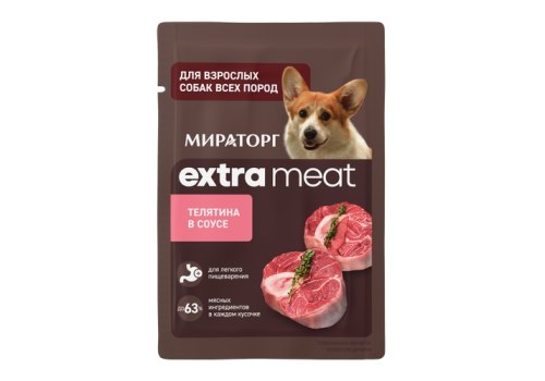 Мираторг Winner Extra Meat Влажный корм Паучи для взрослых собак всех пород Телятина в соусе (цена за упаковку) 80г х 28шт
