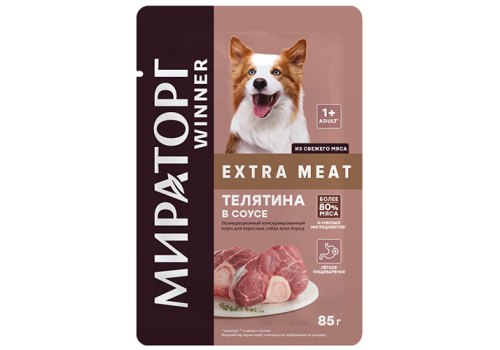 Мираторг Winner Extra Meat Влажный корм Паучи для взрослых собак всех пород Телятина в соусе (цена за упаковку) 85г х 24шт