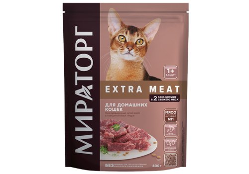 Мираторг Extra Meat Сухой корм для Домашних кошек старше 1 года с Говядиной Black Angus 400 г