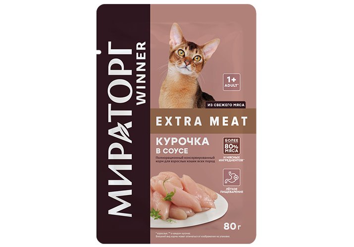 Мираторг Winner Extra Meat Влажный корм Паучи для взрослых кошек всех пород Курочка в соусе (цена за упаковку) 80г х 24шт