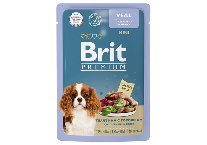 Brit Premium Mini Паучи Брит Премиум для взрослых собак Мелких пород Телятина зеленый горошек в соусе (цена за упаковку) 85г х 14шт