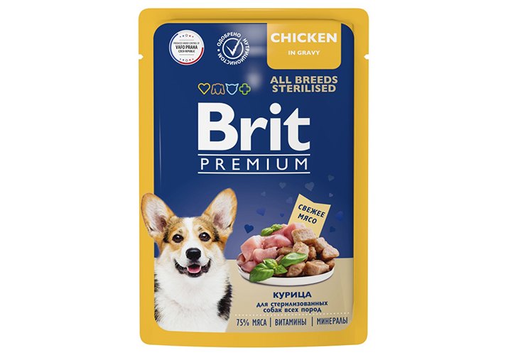 Brit Premium All Breeds Sterilised Паучи Брит Премиум для взрослых Стерилизованных собак всех пород Курица в соусе (цена за упаковку) 85г х 14шт