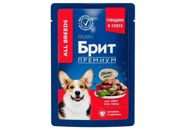 Brit Premium All Breeds Паучи Брит Премиум для взрослых собак всех пород Говядина в соусе (цена за упаковку) 85г х 14шт