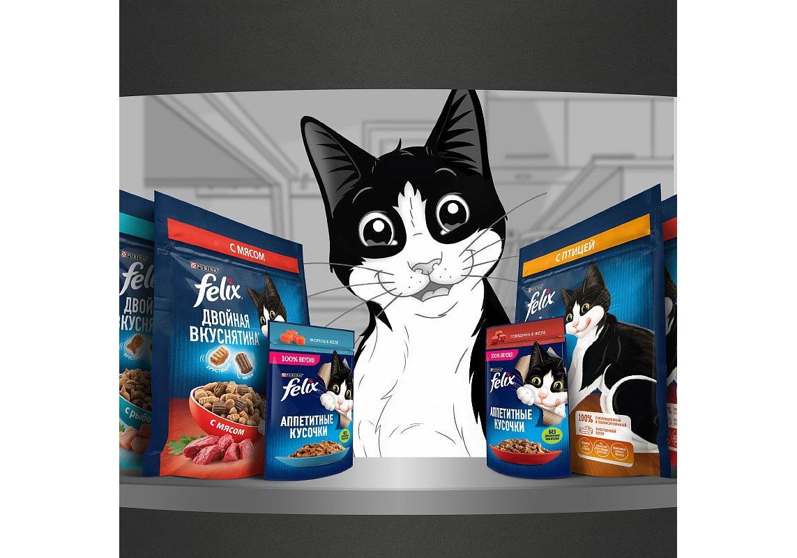 Все знают, что FELIX означает «умный», как кот Феликс! Если вы хотите удовлетворить потребности своих любимых озорных проказников, откройте для себя соблазнительный ассортимент корма FELIX. FELIX — это вкуснейший корм, который выглядит так, как будто вы приготовили его сами, а также сенсационное сочетание превосходного внешнего вида, консистенции и отменных вкусовых качеств, удовлетворяющих пищевые предпочтения любой, даже самой привередливой кошки. И это неудивительно — ведь в ассортимент кормов FELIX входят ароматные желе, соусы и даже хрустящие гранулы — вот почему находчивые коты предпочитают именно FELIX!