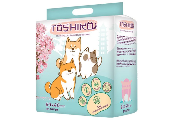 Toshiko Пеленки Тошико для домашних животных впитывающие одноразовые с ароматом Сакуры 60 х 40 см 1 х 30 шт