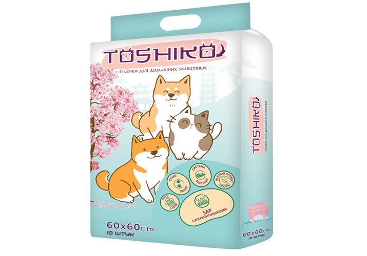 Toshiko Пеленки Тошико для домашних животных впитывающие одноразовые с ароматом Сакуры 60 х 60 см 1 х 10 шт