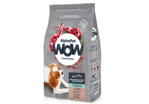 AlphaPet Wow Superpremium Sensitive Сухой корм АльфаПет для собак Мелких пород с Чувствительным пищеварением Ягненок бурый рис 7 кг