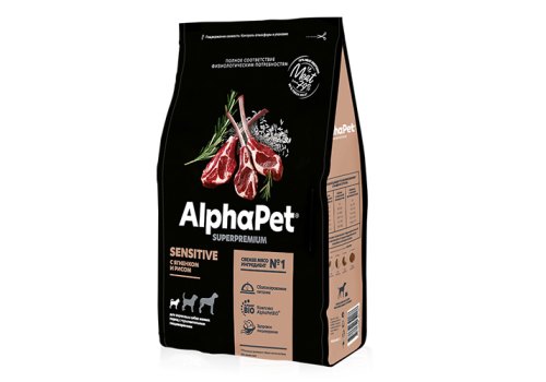 Сухой полнорационный корм с ягненком и индейкой для щенков, беременных и кормящих собак мелких пород AlphaPet® Superpremium.