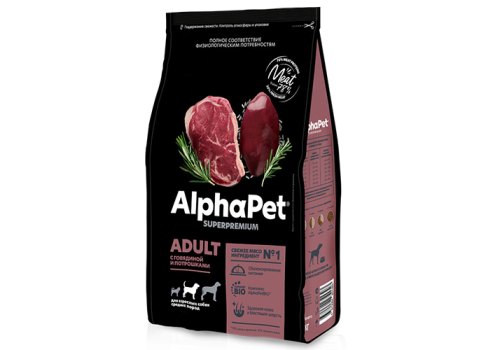 AlphaPet Superpremium Сухой корм АльфаПет для взрослых собак Средних пород Говядина потрошки 12 кг