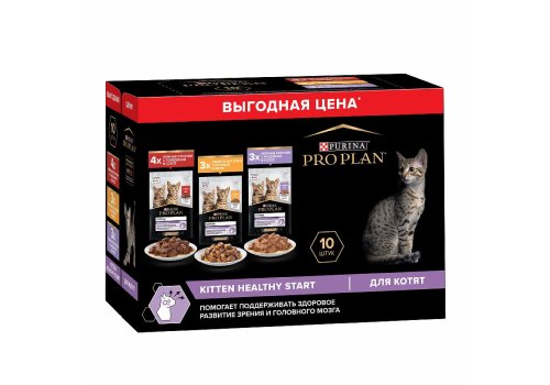 PRO PLAN KITTEN Влажный корм Паучи ПРО ПЛАН для Котят Ассорти вкусов Говядина в соусе Индейка в соусе Курица в желе (цена за упаковку) 85г х 10шт