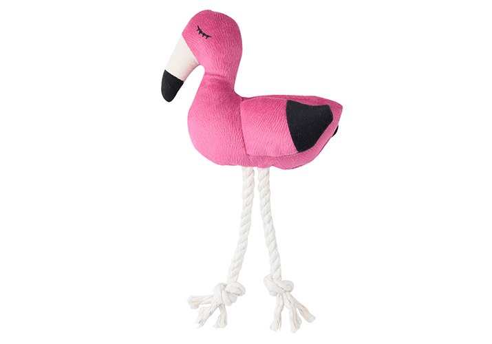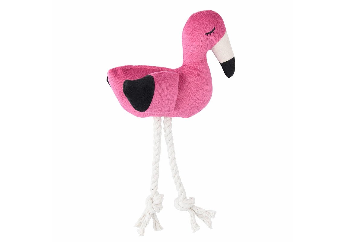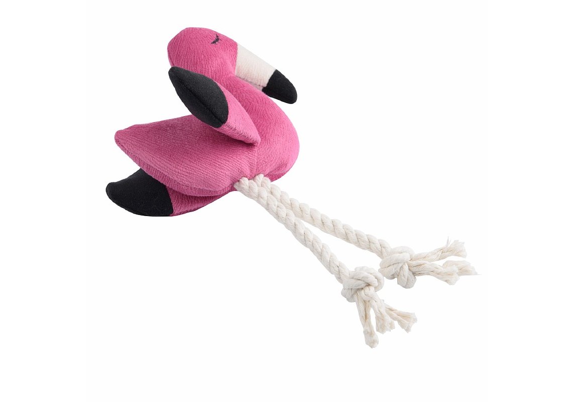 Mr.Kranch Игрушка Мистер Кранч для собак Мелких и Средних пород Фламинго с канатом и пищалкой Ярко-розовый 24 х 13,5 х 6 см
