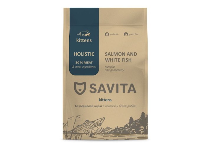 Savita Kittens Salmon and white fish Сухой Беззерновой корм Савита для Котят с Лососем и белой рыбой 2 кг