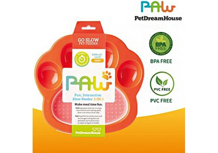 PetDreamHouse Paw 2-in-1 Mini Slow Feeder & Lick Pad Orange Easy Миска ПетДримХаус Лапа Мини 2в1 для собак и кошек для медленного кормления 200г Оранжевый