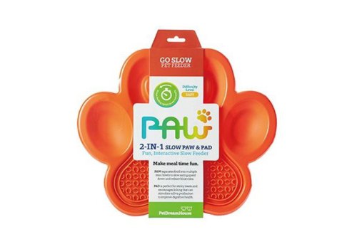 PetDreamHouse Paw 2-in-1 Slow Feeder & Lick Pad Orange Easy Миска ПетДримХаус Лапа 2в1 для собак и кошек для медленного кормления 540г Оранжевый