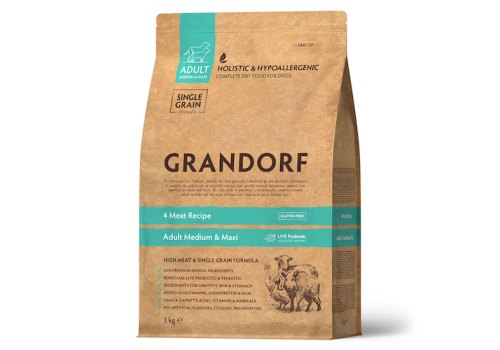 Grandorf Holistic & Hypoallergenic Adult Medium Maxi Probiotic 4 meat Сухой корм Грандорф Низкозерновой с Живыми Пробиотиками для собак Средних и Крупных пород 4 вида Мяса 3 кг