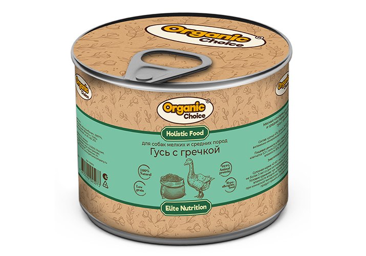 Organic Сhoice Влажный корм Консервы Органик Чойс для собак Мелких и Средних пород Гусь с гречкой (цена за упаковку) 240г х 6шт