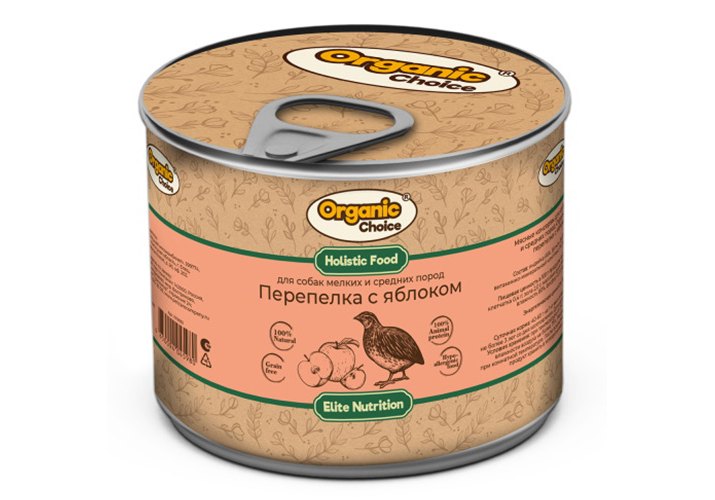 Organic Сhoice Влажный корм Консервы Органик Чойс для собак Мелких и Средних пород Перепелка с яблоком (цена за упаковку) 240г х 12шт