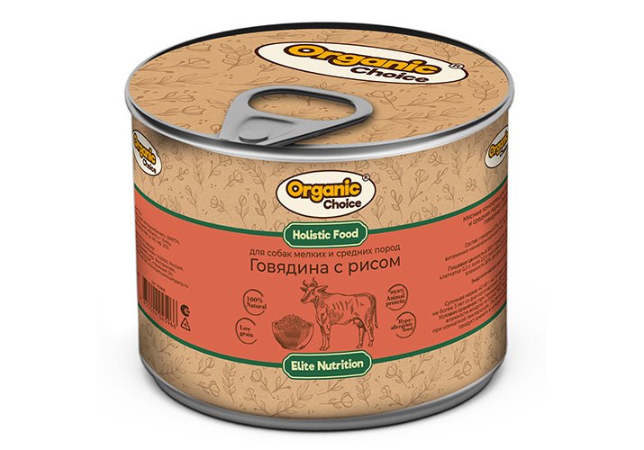 Organic Сhoice Влажный корм Консервы Органик Чойс для собак Мелких и Средних пород Говядина с рисом (цена за упаковку) 240г х 6шт