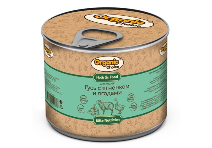 Organic Сhoice Влажный корм Консервы Органик Чойс для кошек Гусь с ягненком и ягодами (цена за упаковку) 240г х 6шт