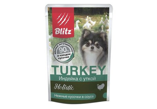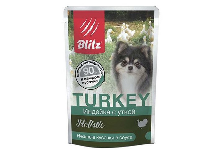 Blitz Holistic Turkey Паучи Блиц для собак Мелких пород Индейка с уткой кусочки в соусе (цена за упаковку) 85г х 24шт