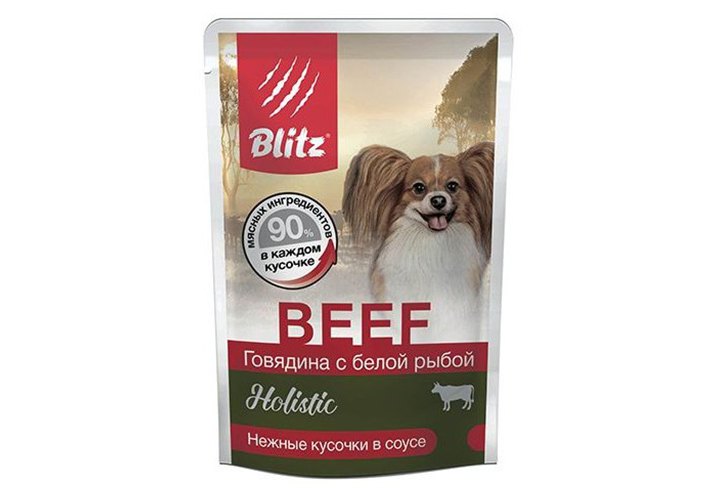 Blitz Holistic Beef Паучи Блиц для собак Мелких пород Говядина с белой рыбой кусочки в соусе (цена за упаковку) 85г х 24шт