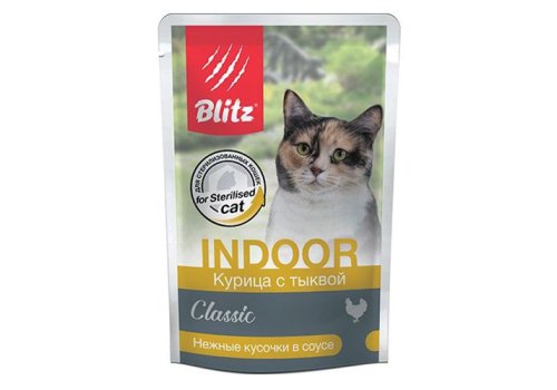 Blitz Classic Sterilised Indoor Паучи Блиц для Стерилизованных кошек Курица с тыквой кусочки в соусе (цена за упаковку) 85г х 24шт
