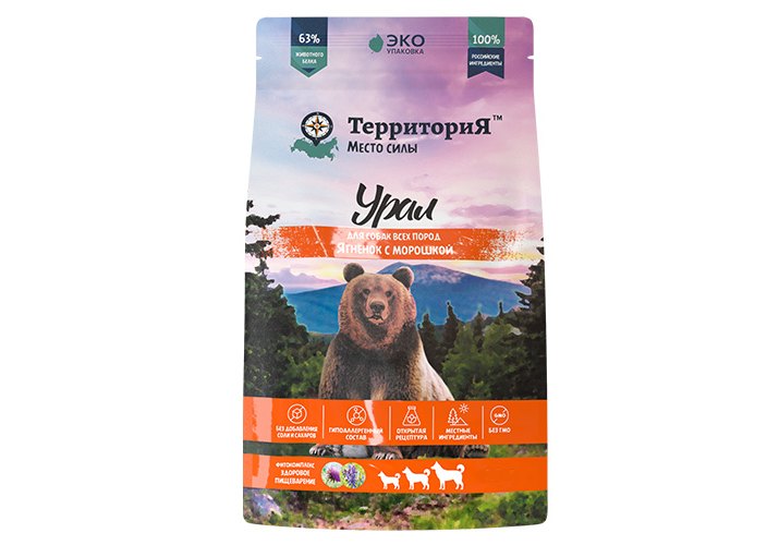 Быть сильным, как уральский медведь, вашему питомцу поможет корм ТерриториЯ™ Урал с ягнёнком и морошкой. Он не содержит компонентов, которые чаще всего вызывают аллергию у собак, и подойдет даже животным с чувствительным пищеварением.