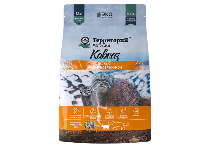 Территория Кавказ Сухой корм для Котят Индейка с брусникой 350 г