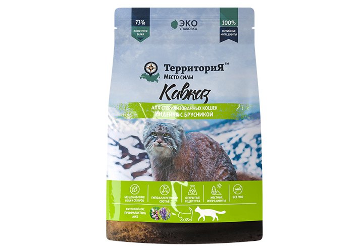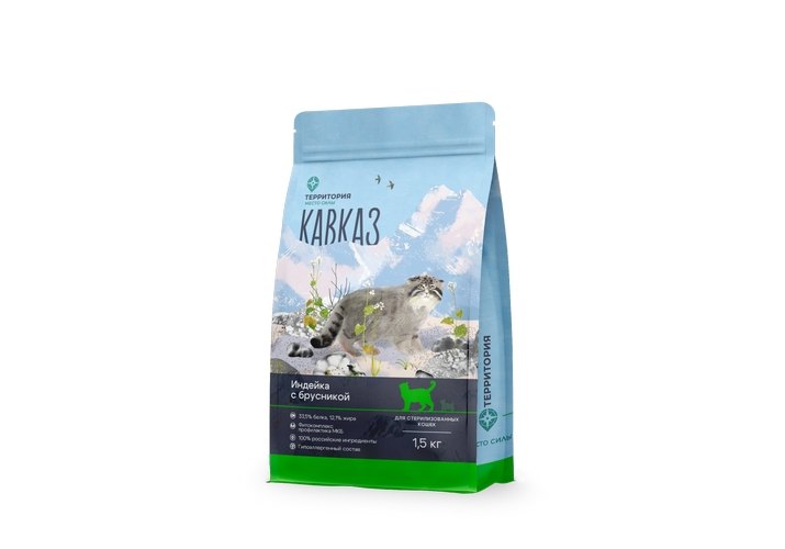 Территория Кавказ Сухой корм для Стерилизованных кошек Индейка с брусникой 1,5 кг