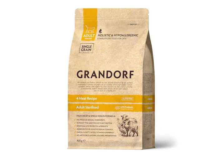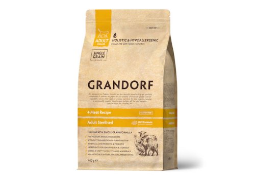 Grandorf Holistic & Hypoallergenic Sterilized Probiotic 4 meat Сухой корм Грандорф Низкозерновой с Живыми Пробиотиками для Стерилизованных кошек 4 вида Мяса 400 г