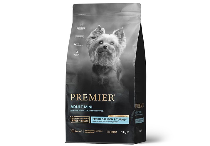 Premier Adult Mini Fresh Salmon & Turkey Сухой корм Премьер для взрослых собак Мелких пород Свежее филе Лосося с индейкой 1 кг