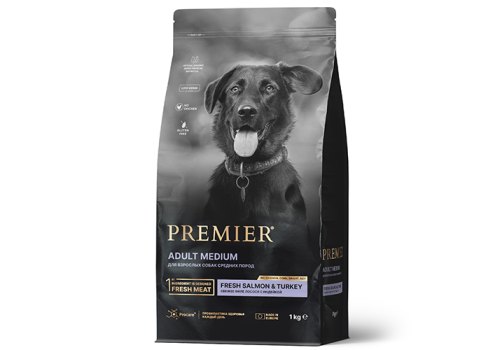Premier Adult Medium Fresh Salmon & Turkey Сухой корм Премьер для взрослых собак Средних пород Свежее филе Лосося с индейкой 1 кг