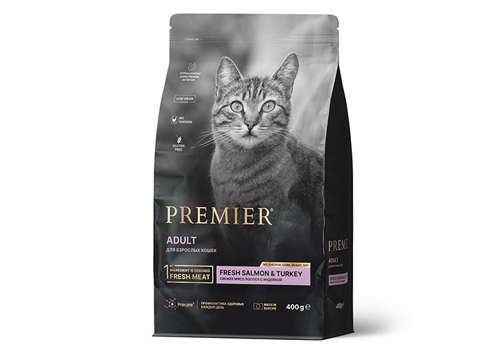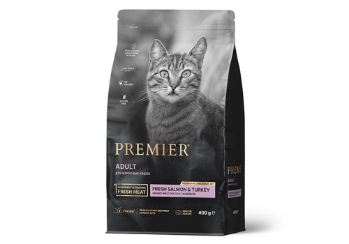 Premier Adult Fresh Salmon & Turkey Сухой корм Премьер для взрослых кошек Свежее филе Лосося с индейкой 400 г