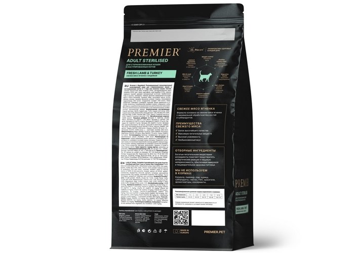 Premier Adult Sterilised Fresh Lamb & Turkey Сухой корм Премьер для взрослых Стерилизованных кошек Свежее мясо Ягненка с индейкой 2 кг