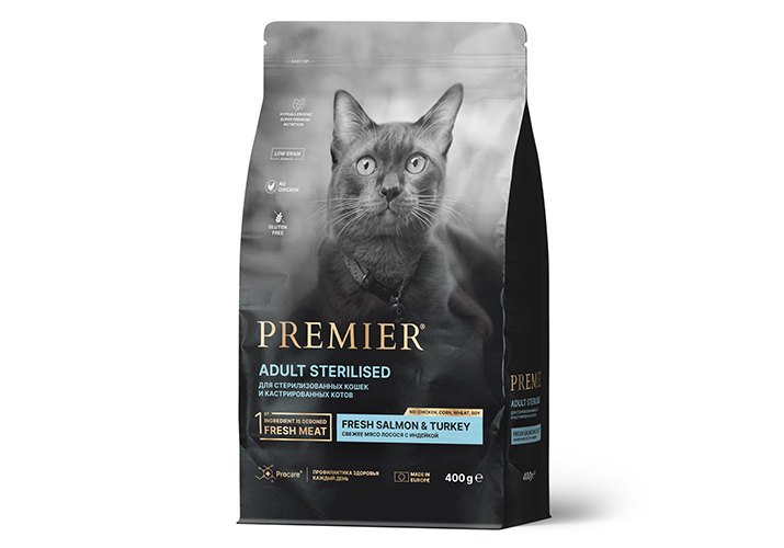 Premier Adult Sterilised Fresh Salmon & Turkey Сухой корм Премьер для взрослых Стерилизованных кошек Свежее филе Лосося с индейкой 400 г
