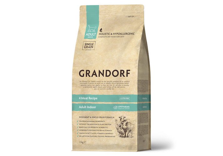 Grandorf Holistic & Hypoallergenic Indoor Probiotic 4 meat Сухой корм Грандорф Низкозерновой с Живыми Пробиотиками для Домашних кошек 4 вида Мяса 2 кг