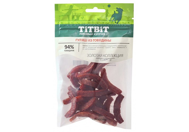 Titbit Золотая коллекция Лакомство Титбит для собак Гуляш из говядины 65 г