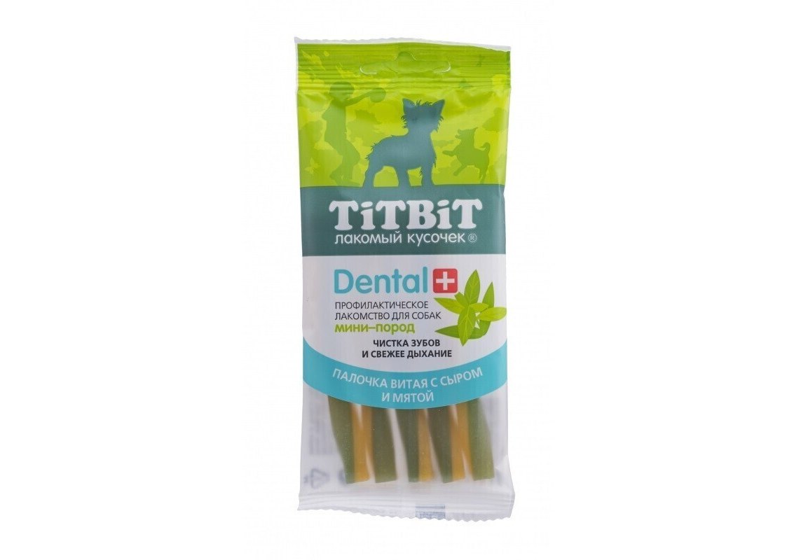 Titbit Dental+ Лакомый кусочек Лакомство Титбит для собак Мелких пород Палочка витая с Сыром 30 г
