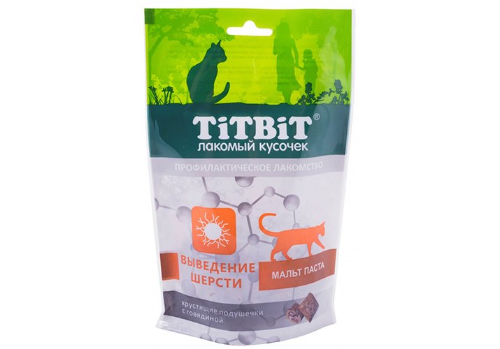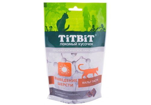 Titbit Хрустящие подушечки Лакомство Титбит для кошек для Выведения шерсти 60 г