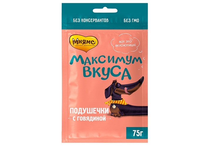 Мнямс Максимум вкуса Лакомство для собак Подушечки с Говядиной 75 г