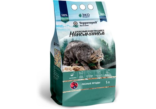 Территория Лесные ягоды Комкующийся наполнитель для кошачьего туалета Древесный 5 л