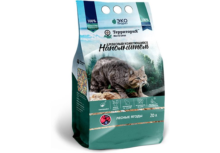 Территория Лесные ягоды Комкующийся наполнитель для кошачьего туалета Древесный 20 л