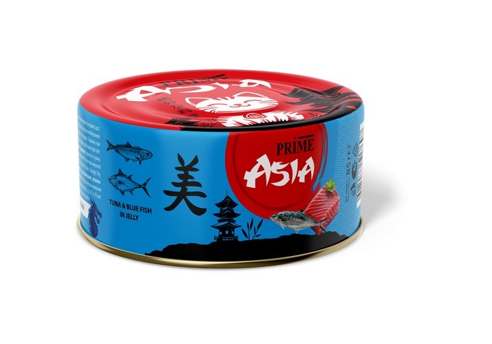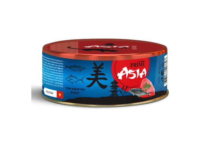 Prime Asia Tuna & Blue Fish in jelly Консервы Прайм Азия для взрослых кошек Тунец с голубой рыбой в желе (цена за упаковку) 85г х 12шт