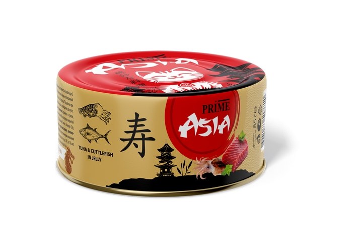 Prime Asia Tuna & Cuttlefish in jelly Консервы Прайм Азия для взрослых кошек Тунец с каракатицей в желе (цена за упаковку) 85г х 12шт