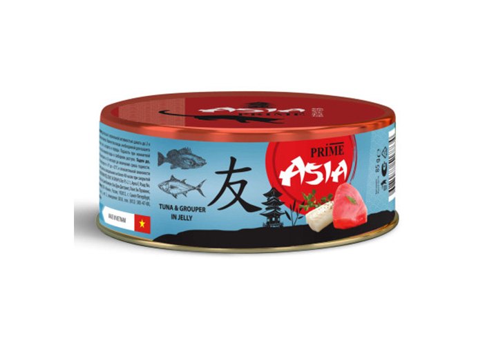 Prime Asia Tuna & Grouper in jelly Консервы Прайм Азия для взрослых кошек Тунец с рыбой групер в желе (цена за упаковку) 85г х 12шт