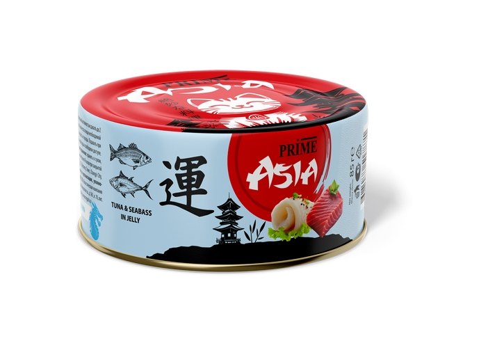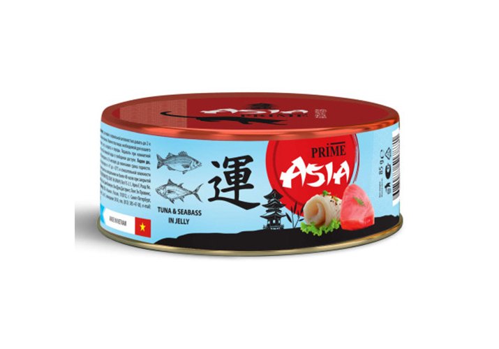 Prime Asia Tuna & Seabass in jelly Консервы Прайм Азия для взрослых кошек Тунец с сибасом в желе (цена за упаковку) 85г х 12шт