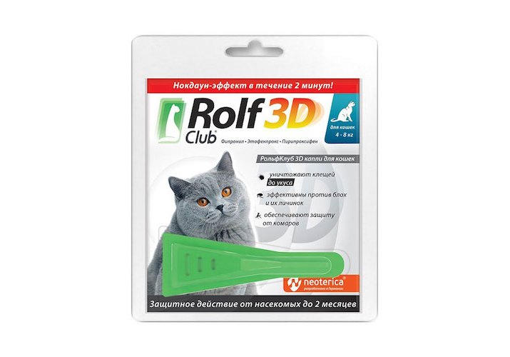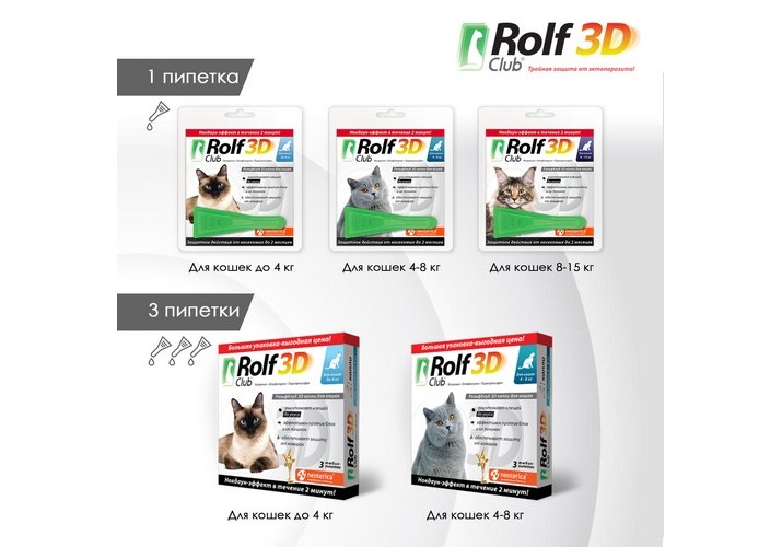 Rolf Club 3D Капли Рольф Клуб от Клещей и Блох для кошек весом от 4 до 8 кг 1 х 3 шт